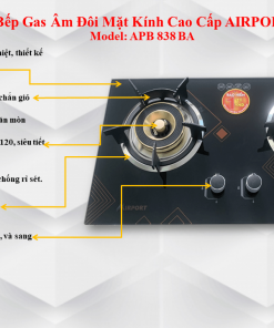 💕 BẾP GAS ÂM ĐÔI CAO CẤP HIỆU AIRPORT – APB 838 BA