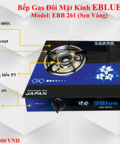 Bếp Gas Đôi Mặt Kính EBlue (Sen Vàng) EBB261 – Hàng Chính Hãng