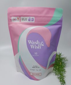 | Viên giặt 3 in 1 Wash & Wish với chất tẩy tiện lợi đánh bay được 100 loại vết bẩn khác nhau và tiết kiệm với ba thành phần nước giặt đậm đặt + nước xã + chất làm mềm và bảo vệ sợi vải giúp cho việc giặt dũ trỡ nên tiện lợi và thoải mái hơn |